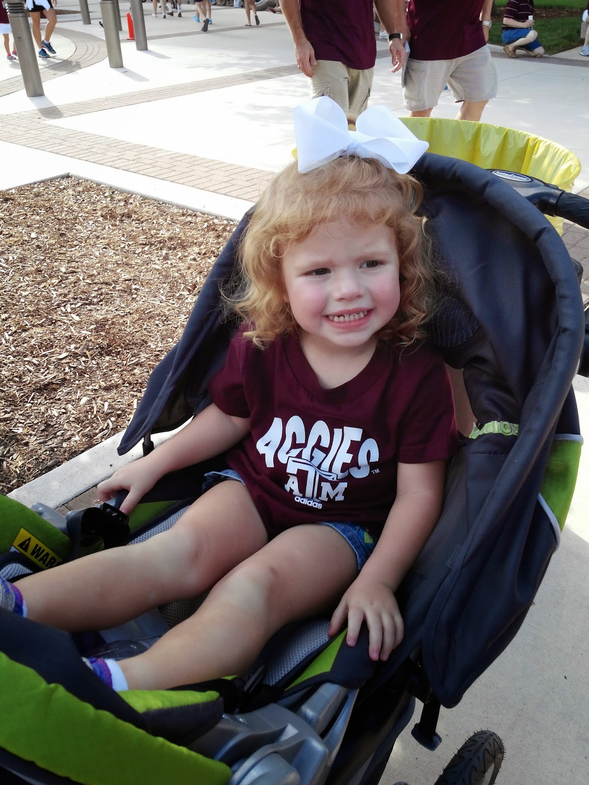 A few weeks ago we went to College Station for the first Aggie Football Game and to see Kyle Field since it just got a "FaceLift". Its GINORMOUS!! And so pretty!! Anyways the day was super HOT and we all sweated buckets but we made it through with only minimal tantrums. Greyson and Braelyn had tons of fun and got to see old friends, Avery and Kinley and got to meet Everett, which was his first Aggie Game Day too! Emma and Everett are only 2 days apart.